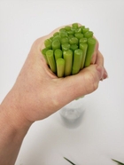 My tip for you today is about those snippets in the bottom. They need to be wedged into the vase as tightly as possible without damaging the stems. When you fit the snippets you will notice they have a thicker and a thinner end. These can be used to adjust how tightly they fit into the vase. If the snippets move once you add the first bit of water, reach in with a tweezer and see if you can secure them by simply turning some of the stems and placing the thicker side of the stem to the top and the thinner to the bottom. This is option one because it causes the least amount of damage. If the stems are still too loose you will need to add in more stems. This can cause the stems to be crushed and the result will be messy and your water murky. Take care. Also resist the temptation to pound in a stem because it will definitely crush the delicate stem.