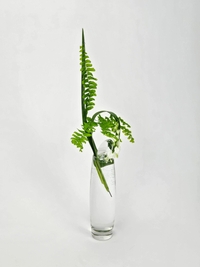 Have a look at he bleeding heart stems. They naturally grow at an angle that can be positioned to curve how you want it. Clock the stems so that the natural curve is exactly how you want it and then secure it in place with the heavier crystal and a tiny drop of floral glue, if needed..