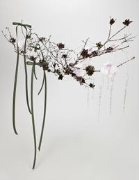 Also I prefer, where possible, to design as much as possible of the arrangement how it will be displayed. Prop it up or hang it up if that is the way it will be viewed. This way you can make sure the design details make sense. For instance, once the swag is in position will the water source for your orchids still be upright? The phalaenopsis orchids are slow drinkers and you can get away with the tiniest little water tube (like my drinking straw tube, see the tutorial below the post) but they do need to be hydrated to remain fresh for as long as possible. Adding the flowers once the design is in position will ensure that the water will not spill out of the tube if it is now at an odd angle.