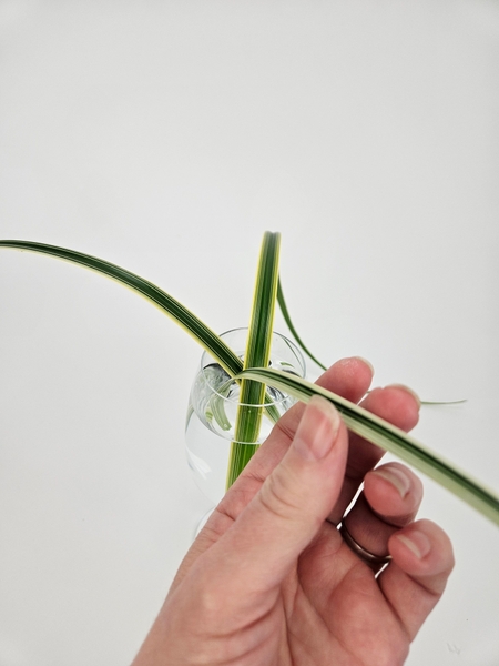 Place two blades of grass into the display container in a "v" shape.