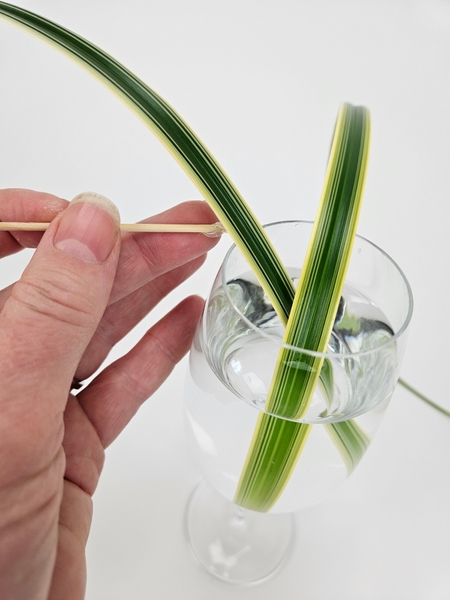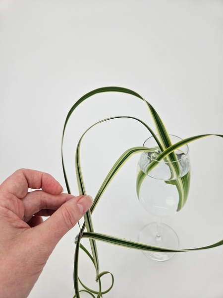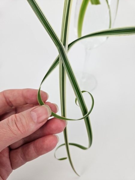 Gently curl the grasses to make sure they will dangle above your display surface. You can always adjust it later but it makes it easier to add grasses if you have a guide to work towards.