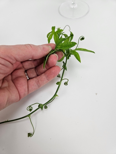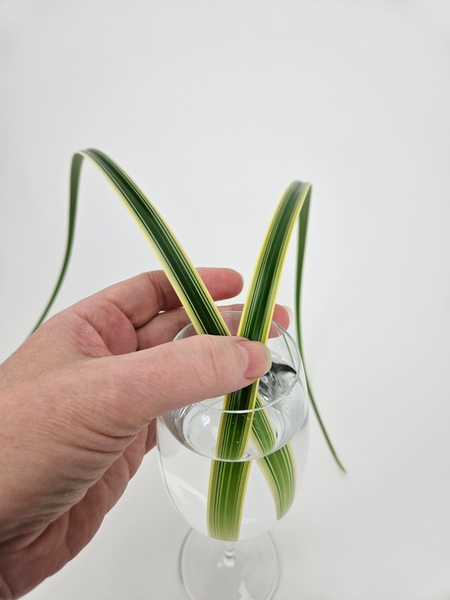 I am designing in a small wineglass but you can also use a budvase or any small display container. Fill the wineglass with water.