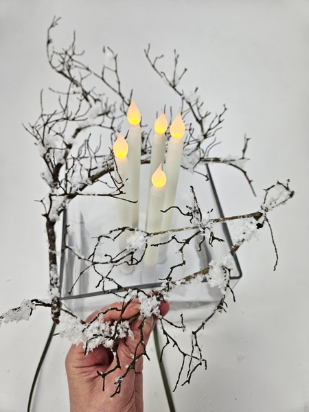 For detailed instructions on how to add artificial snow to dried twigs see the Tutorial linked below.