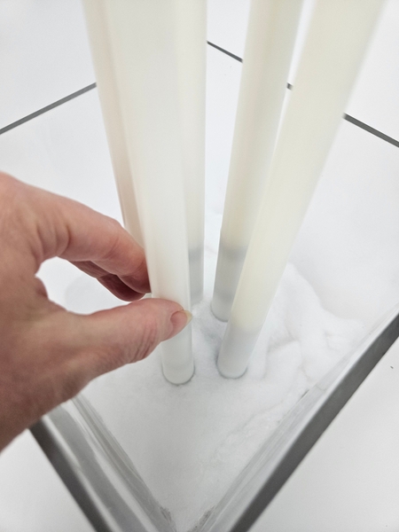 The twigs are going to take the longest to prepare so start adding the snow the day before you want to design. Set them aside so that the glue dries completely.