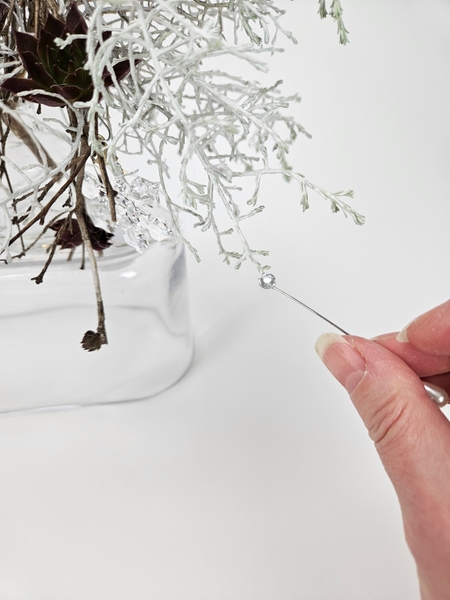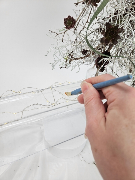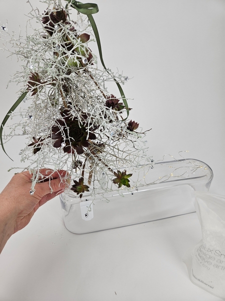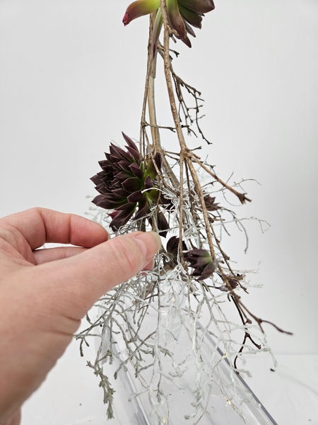 And glue the cut end of the long runners to sweep into the delicate silver bush Christmas tree. The long runner will easily carry the weight of the succulent.