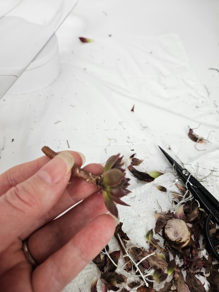 Book readers turn to page 105 of my book where I show you in detail how to groom succulents so that you can glue and wire them into a design. This is a great way to allow the succulents to callus over if you want to propagate your overgrown plant.
