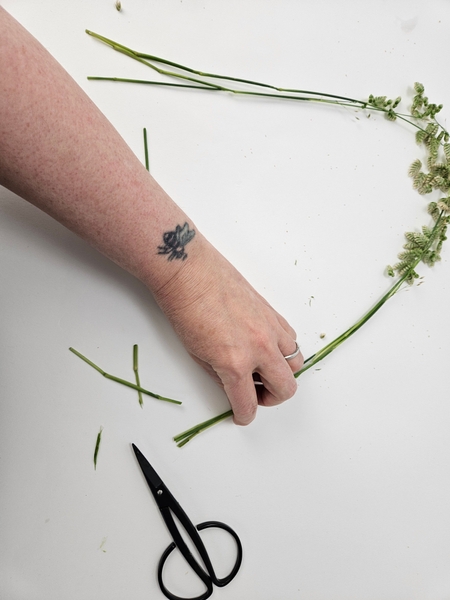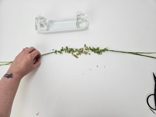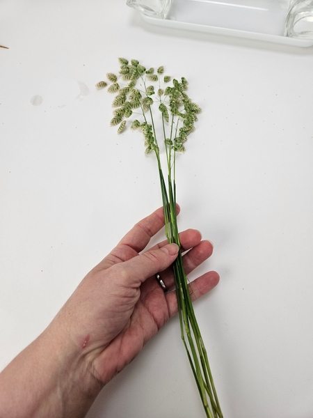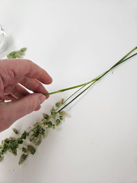 Clean up the grasses so that they are ready to design with. Strip away all the leaves and so that you just have the tall inflorescence left to design with.