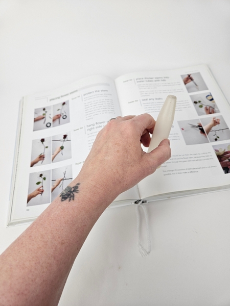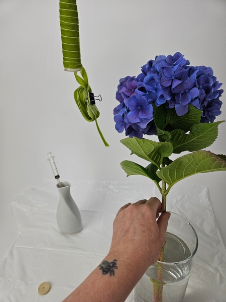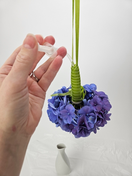 While you are on that page also glance at the opposite page to see my advice on how to adjust the water level and stem position inside a water tube for upside down hanging flowers so that they can remain hydrated to the absolute last drop of water available... so important when designing with thirsty hydrangeas!