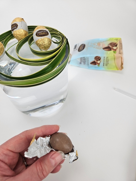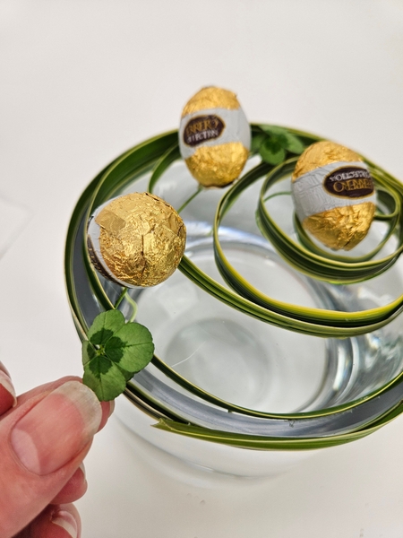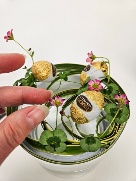 And drape the Passiflora vine around the design to give it a hint of a nest shelter for the flowers and Easter eggs.