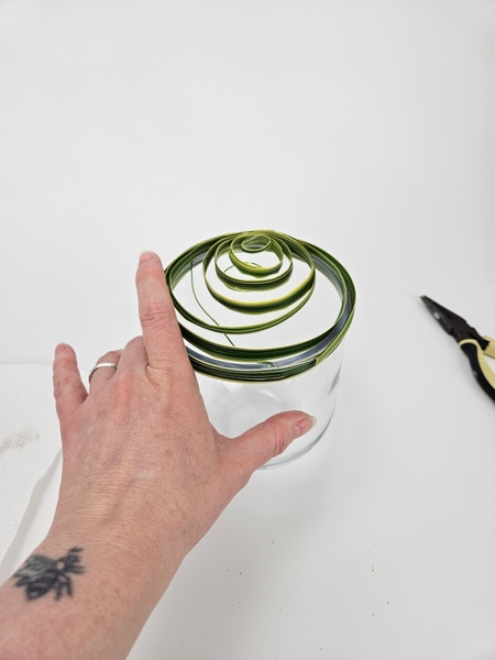 Adjust the wire and secure the matching grass circle to the wire to conceal the spiral.