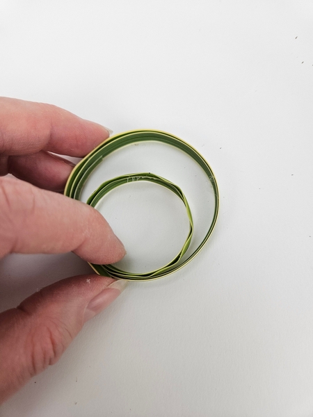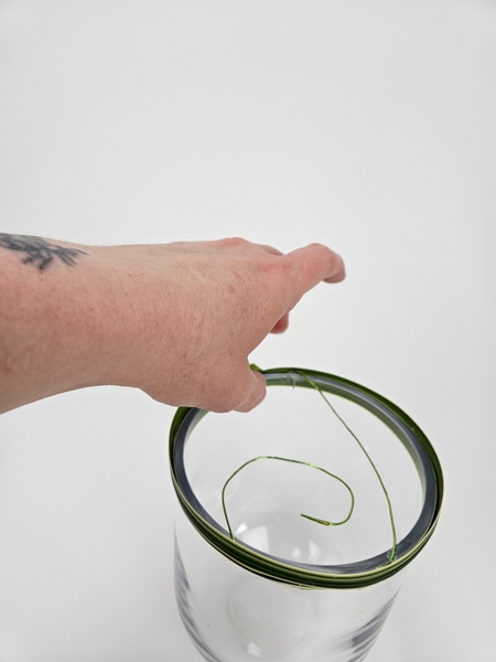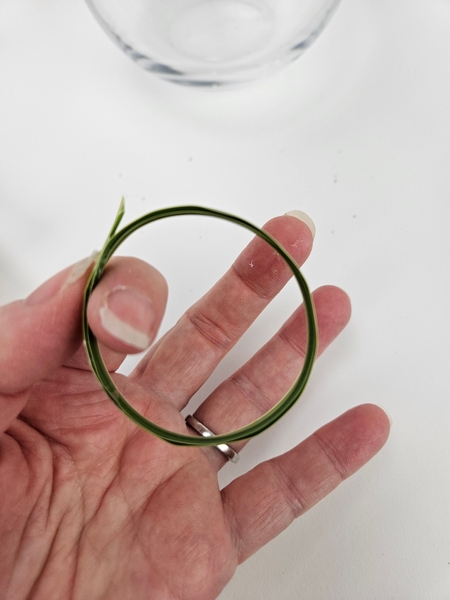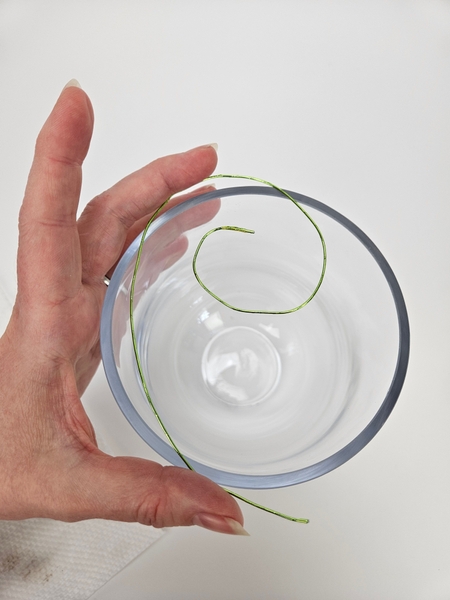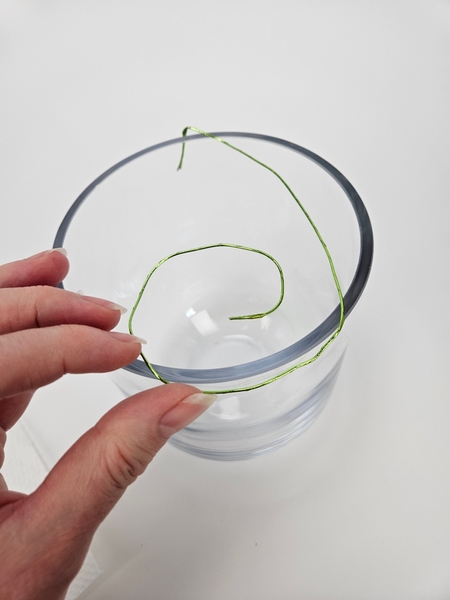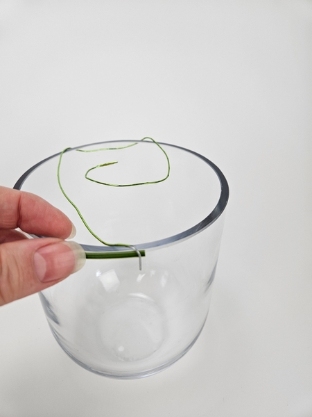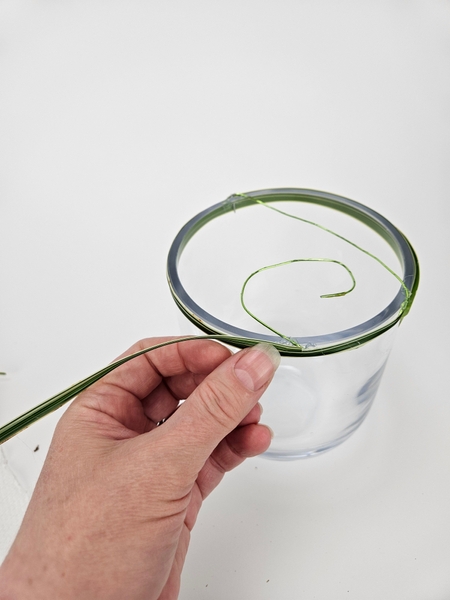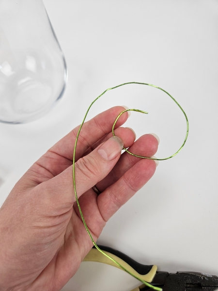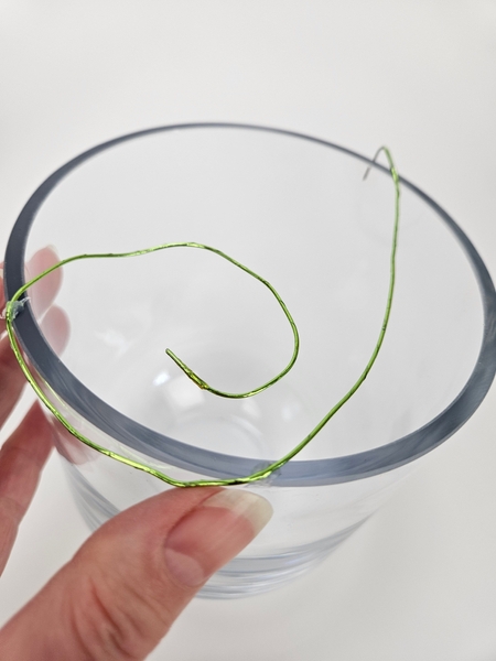 We start the design by concealing the wire with a blade of grass. Slip the grass under the wire...