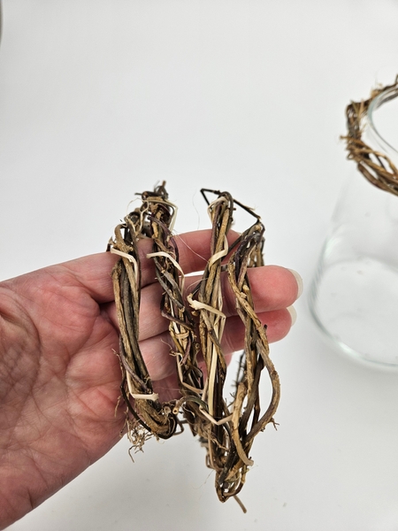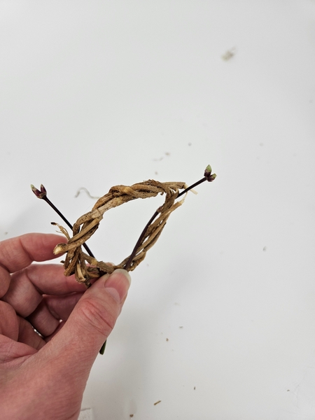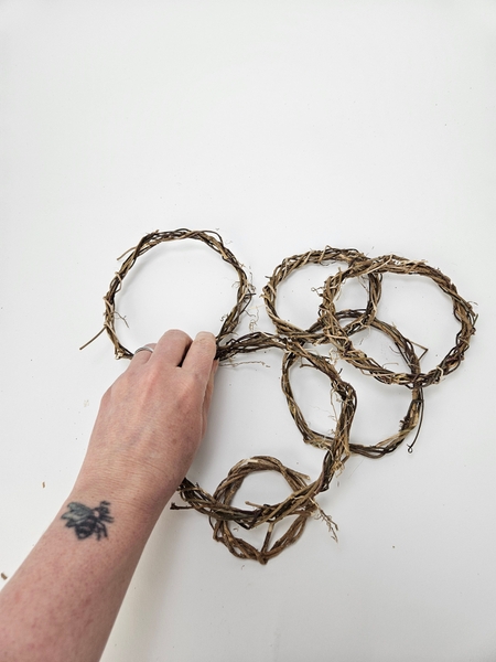 This design is going to take a bit of preparation. First we weave the wreaths and set them aside to dry.
