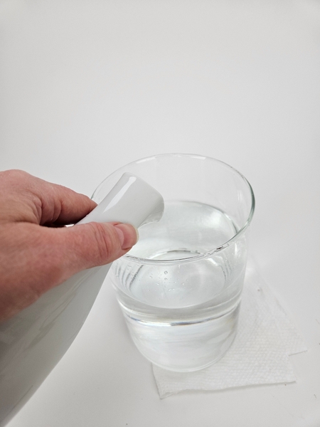 Pour water into the display container at a level just below where the wreaths will wedge into place.