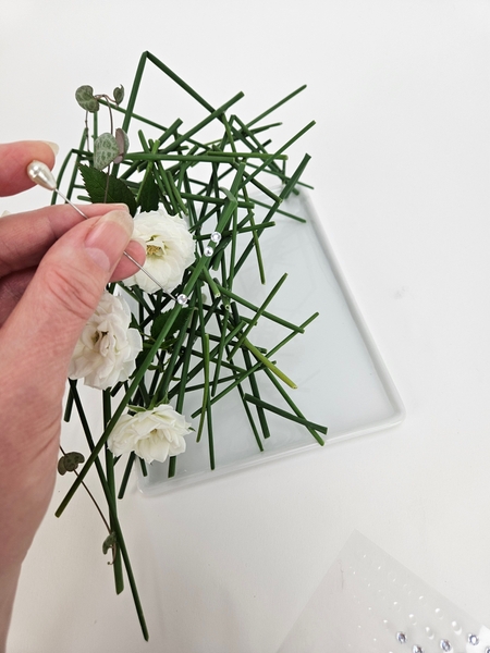 Finish the grass armature with a few decorative grasses that rest over the armature.