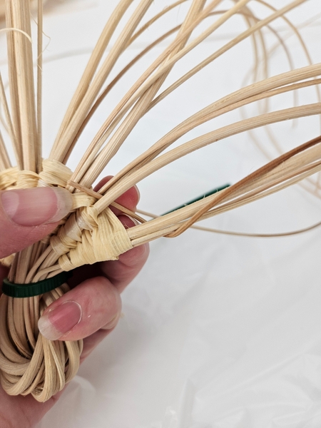 And combining the rattan into new bundles. Creating a petal like flair in the fan.