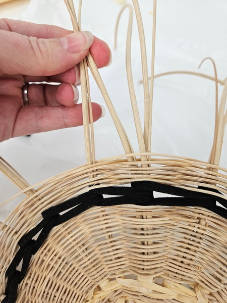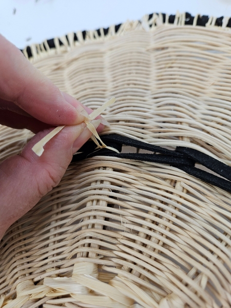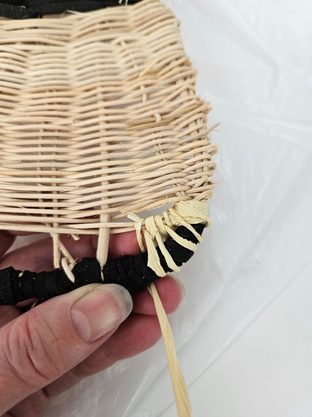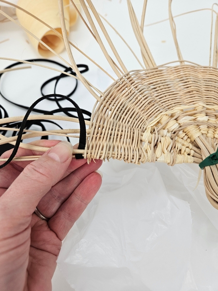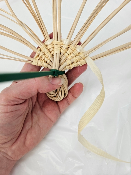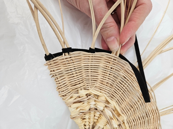 Pinch the fibre between the rattan and start weaving from one end to the other.