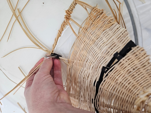 The rattan is dry by now so it might be easier to secure the new bundles (it takes a bit of force to keep them separated) with clips.
