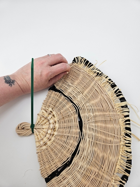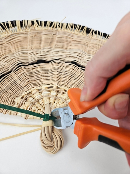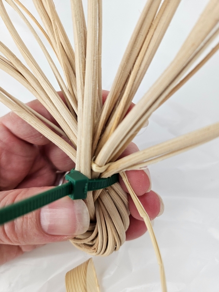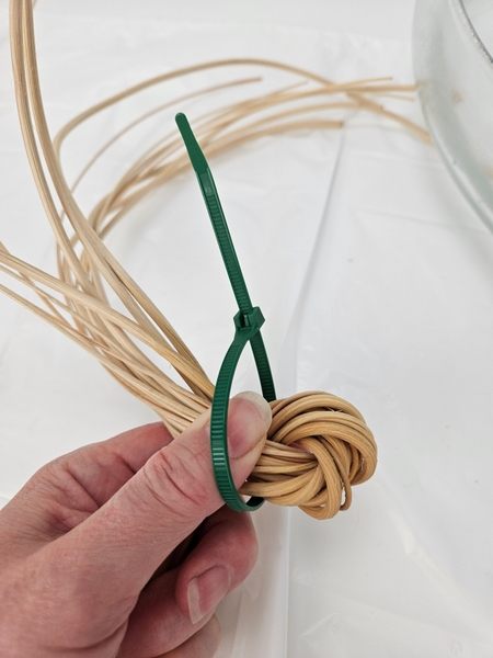 Pull the cable tie tighter than tight. You want this twist to permanently set into handle as the rattan dries.