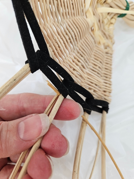 Wrap the leather around the rattan bundle and extend it to the next rattan bundle...