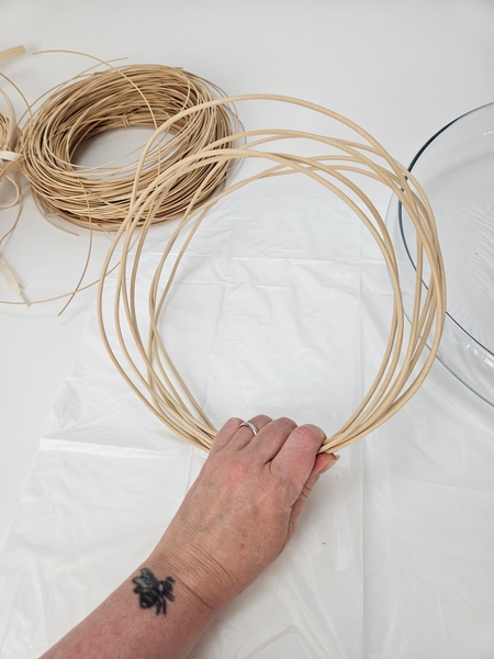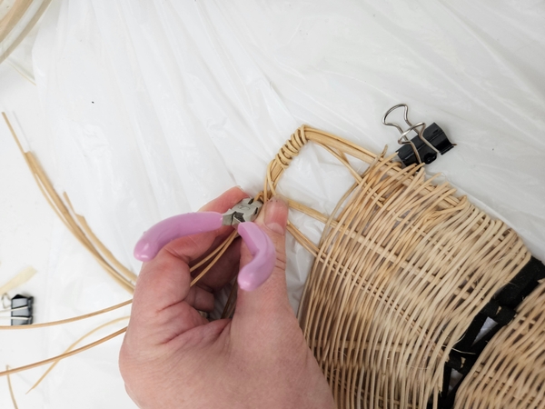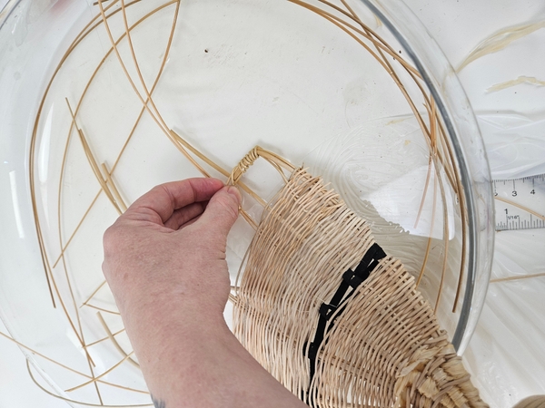 Keep the warm water nearby so that you can soak any additional rattan in water, if needed.