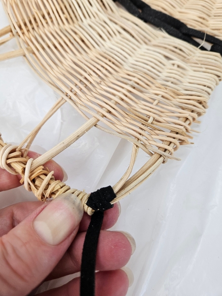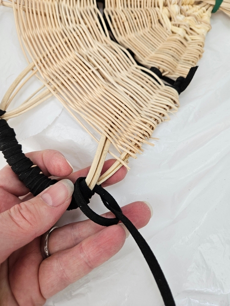 You can continue to weave with the rattan but for my design I wanted to incorporate some black leather and change up the weaving pattern slightly to add design gaps (for twigs...)