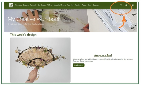 Click the person icon top right of the page to sign in and unlock your brand new Search feature to find the inspiration you need, in this week’s case “drying hydrangeas”. There it is! But wait… there’s more (he he he). You will also see a list of supporting Tutorials that will set you on a learning path to become an expert in this technique. Now you need some sort of a bookmark so that you can add and manage all your favourite design inspiration, right? When you open these I-have-to-try-this-next-time Tutorials and Design inspirations you can click on the green heart on the side of each post to save it to your personal (and private) Favourite list so that you can come back to it at any time.