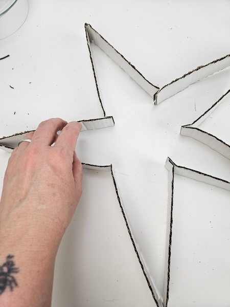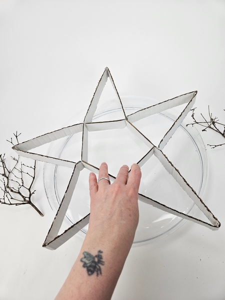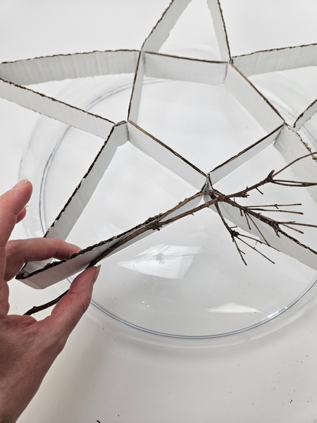 I am using the cardboard star as a guide to shape my twig star on.