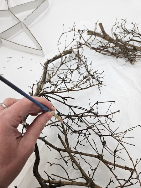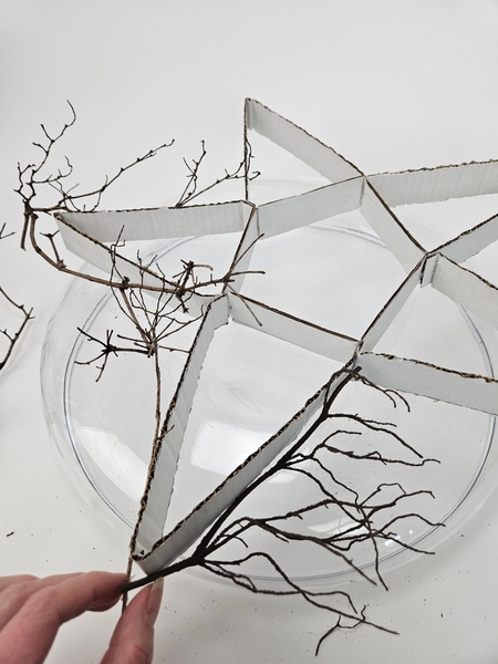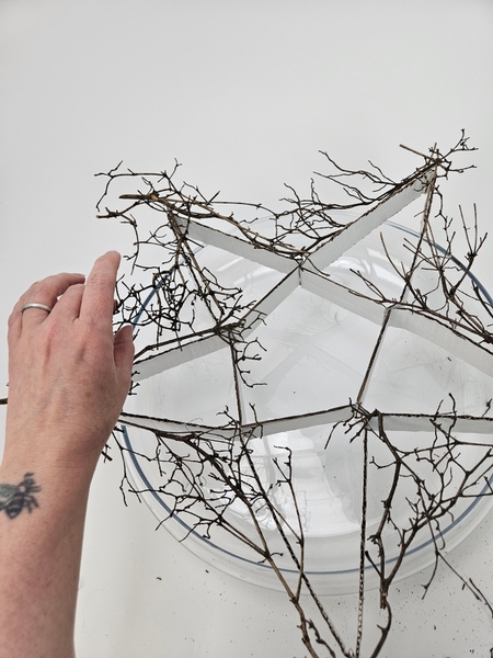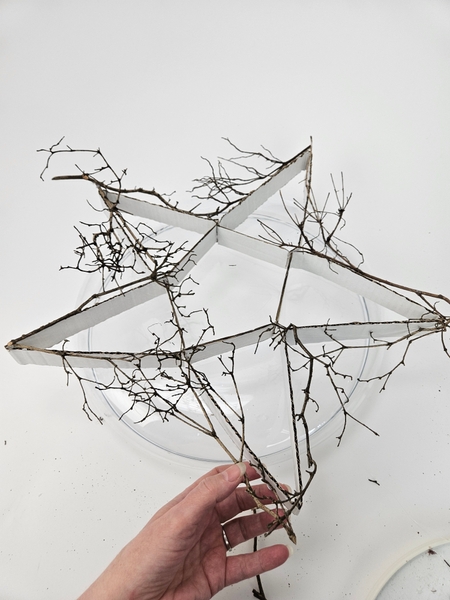 First focus on outlining the star with glued in twigs..