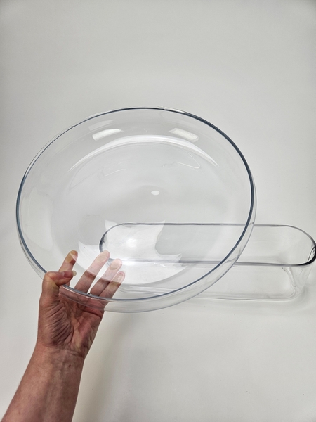 I am using a low bowl and a oval glass container for my display...