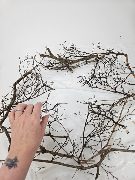 Lightly rest the twig star on a flat working surface to glue in the the twigs. You want a flat but robust shape.